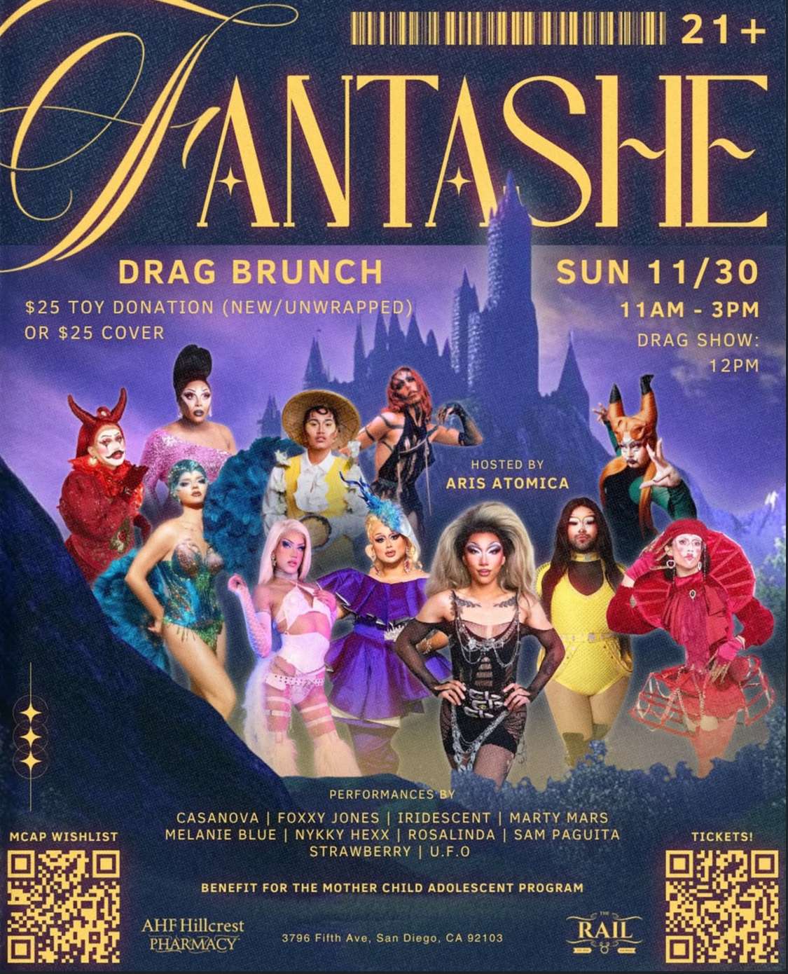Step into a world of fantasy, magic, and fierce drag brunch energy at FANTASHE, a special benefit show supporting the Mother Child Adolescent Program (MCAP). Escape into a whimsical realm brought to life by an all-star cast of performers, all hosted by the radiant Aris Atomica.